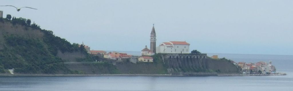 After a meal at the local restaurant we walked along the coastal path to Piran with its marvelous tower, a couple of lagers on the shore of the Med overlooking what we think might be Venice. Then we ran through the increasingly torrential rain to a Russian restaurant in the harbour for fish soup, grilled sardines and roast potatoes all of which was excellent and well worth the 10 euros.