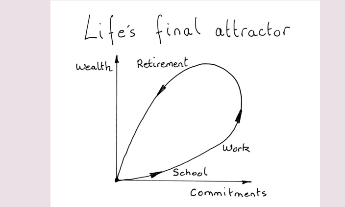 Loving these cartoon perspectives on “science satire and dark thoughts on the Slimfigures.co.uk website. What I find really interesting is that they test and challenge your understanding of the quantum physics/complex concept while adding some really powerful philosophical questions like the one below on filling ones life knapsack. Just Brilliant.