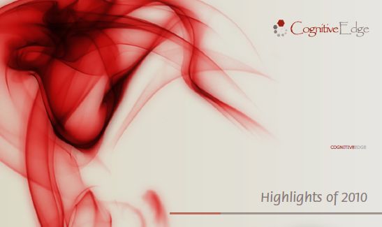 Congratulations to Cognitive Edge, it is good to see in the just published Annual Report for 2010 that they are still growing stronger and stronger and that SenseMaker is becoming a much more important part of their business.
