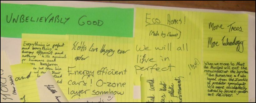 The children worked with so much speed and enthusiasm that we had time for them to look at two other created stories and still take time to consider their personal pledge of “what they would do personally towards an ‘unbelievably good future’.
