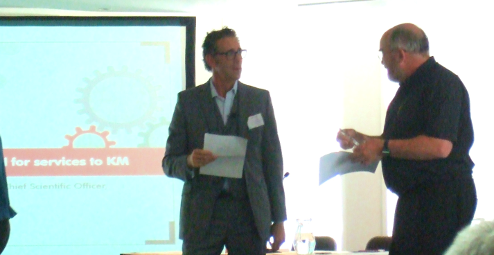 Another KMUK over and its a lifetime achievement award for services to KM for Dave Snowden presented here by the great Nick Davies of the Really Great Training Company. David Gurteen was also amongst the winners as ‘Best KM colaborator’.
