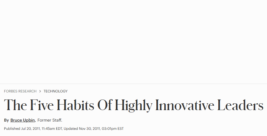A very interesting article by Bruce Upbin on the Forbes.Com website caught my eye. Entitled ‘The five habits of highly innovative leaders‘.