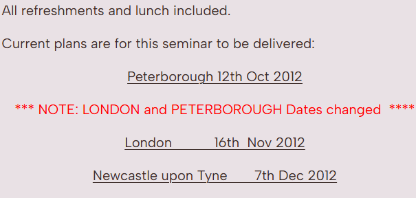 Exciting times ahead. I have finally arranged the first three outings of my one day seminar entitled: