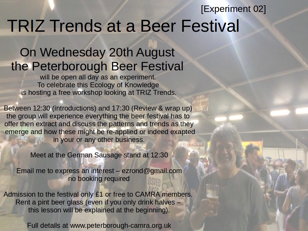 Seasoned KM and Innovation professionals may want to combine this event with the preceding ecology of knowledge masterclass plus beer festival the day before on Tuesday 19th August.