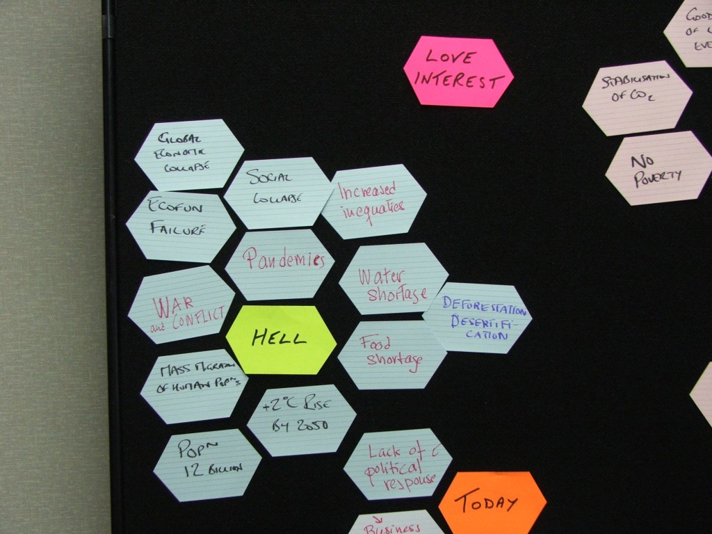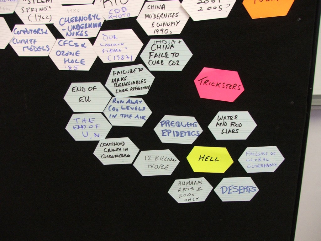 A recent request on Twitter for anyone who had run a Future Backwards exercise predicting the pandemic set me on a mission. In 2005 English Nature (where I worked) had hosted a huge Climate Change Conference on behalf of the EEAC (European Environment and Sustainable Development Advisory Councils). I was asked to run the preliminary warm up day for the conference in Oxford, and I ran a Cognitive Edge based exercise which Dave Snowden named ‘future backwards’ looking at Today, the past, a worst case future (Hell) and a best case future (Heaven).