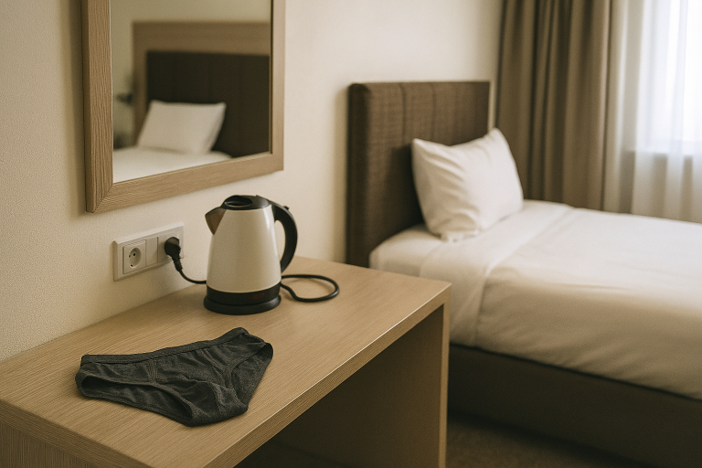 “When you get back to your room, stuff your underpants into the kettle, top up with water and wait for it to boil. Carefully remove the pants, roll them in the towel to dry and hang them on the radiator. Tomorrow you will have the cleanest, boil washed pants in the building”.